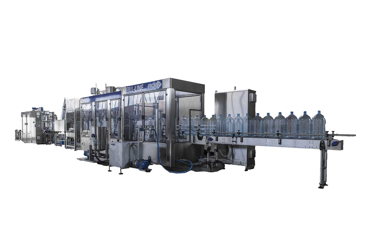 Лінії розливу для води та напоїв — продуктивність від 500 до 24 000 пляшок/год, формати ПЕТ і скло.